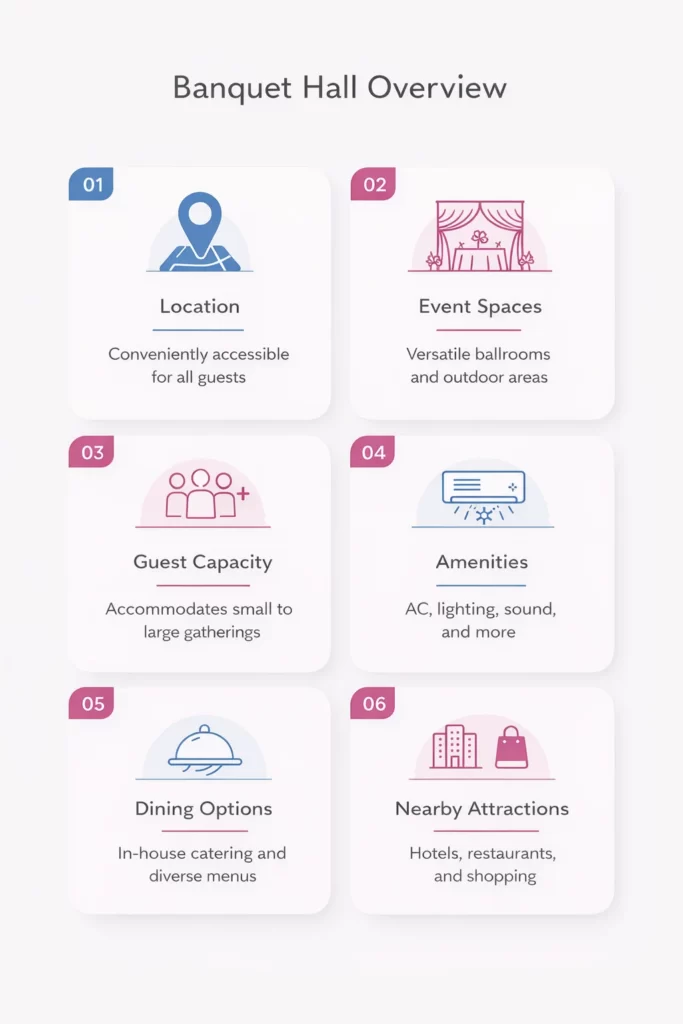 The right banquet hall enhances guest comfort, simplifies logistics, and sets the tone for your celebration. A poor choice, however, can lead to overcrowding, hidden costs, and unnecessary stress.