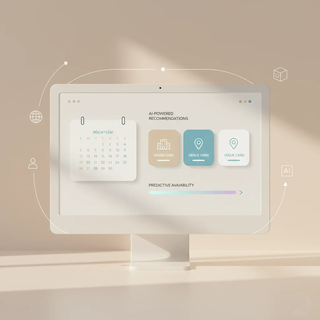 The platform analyzes user-defined parameters—dates, capacity, and more—to surface only qualified venues.