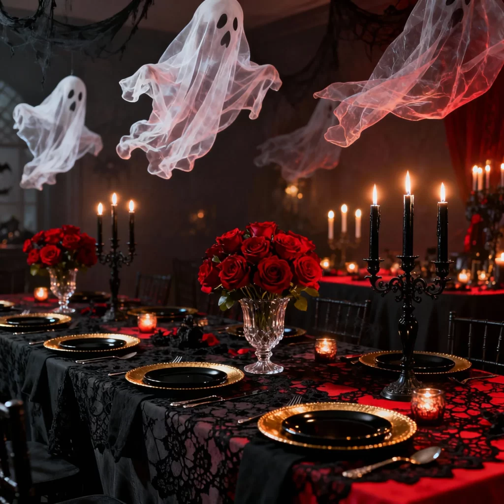 Set a magical scene for your celebration. Use dark colors, soft lighting, and candles. Add themed decorations that blend romance and Halloween.