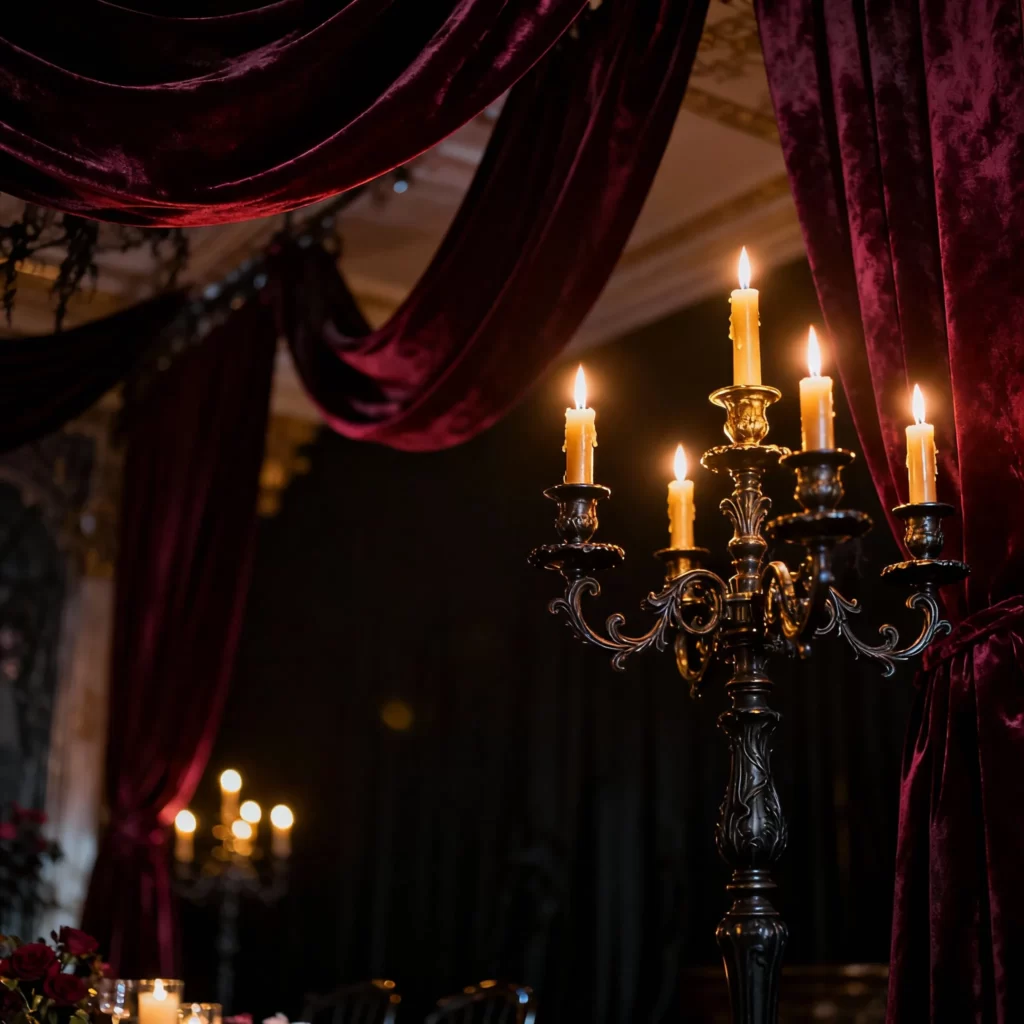 - Candlelight: Set the mood with an array of orange, purple, or black candles in decorative candelabras. The flickering candlelight creates a warm and romantic atmosphere.