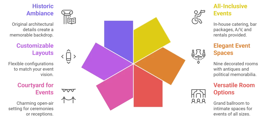 Historic CharmAntique décor, architectural details, and political memorabilia.Heritage-themed events, photoshoots