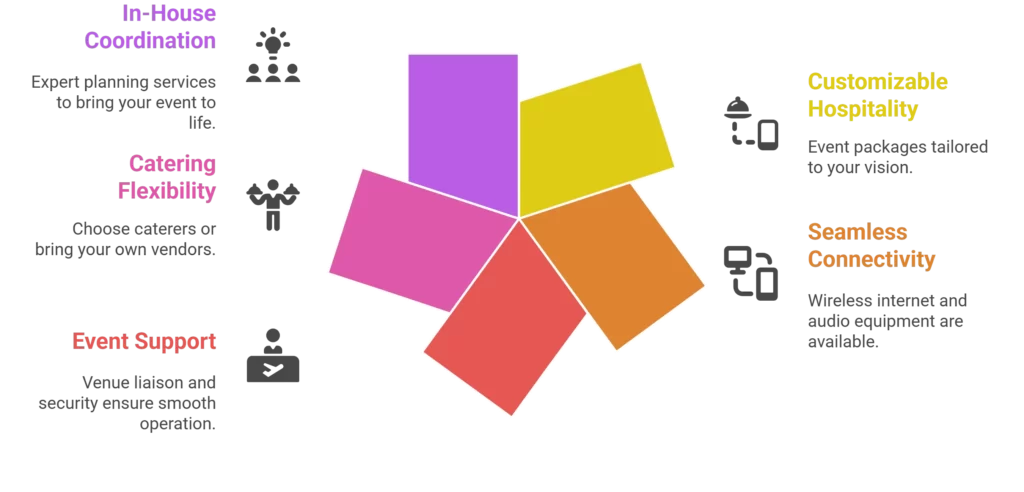 - Event Support: A dedicated venue liaison and on-site building security ensure everything runs smoothly.