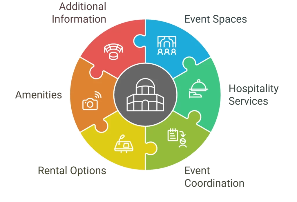 - Versatile Hospitality Services: Host your events with full-service catering options such as buffet, cocktail reception, plated meals, hors d’oeuvres, and dessert stations. Bar services include options like open bar, limited bar, champagne toast, specialty wines, house liquors, and signature drinks.