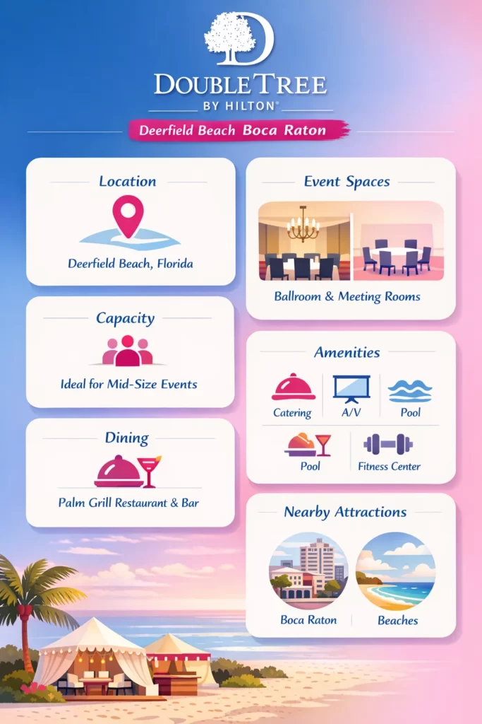 DoubleTree Deerfield Beach stands out for its versatility and professional event services. With dedicated planners and flexible spaces, it ensures every event runs smoothly.