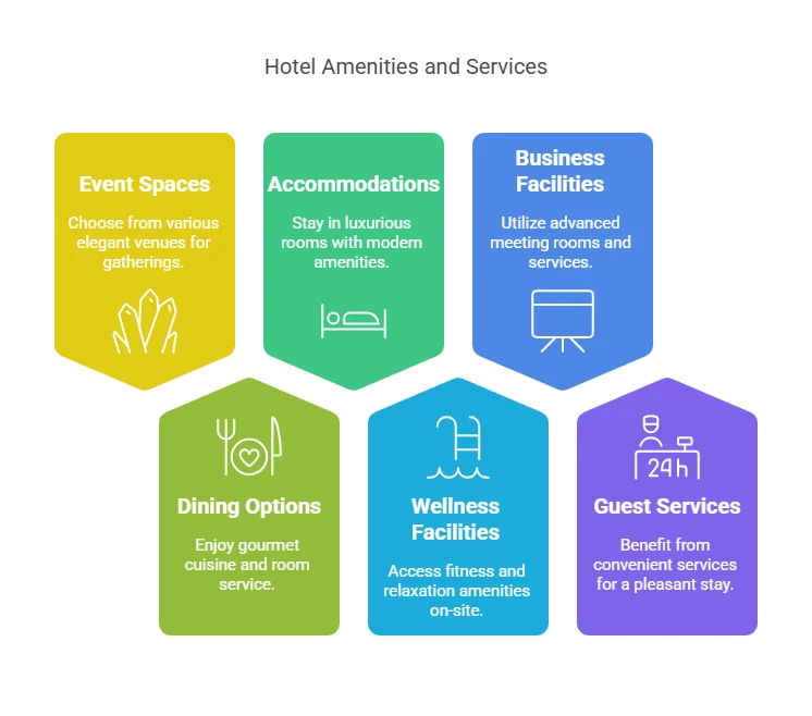 - Elegant Event Spaces: Choose from state-of-the-art meeting rooms, a grand ballroom, and scenic outdoor venues to host corporate gatherings, weddings, and private celebrations.