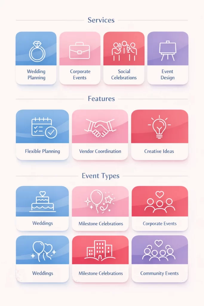 - Wedding Planning : Full planning support for weddings, including coordination and execution.